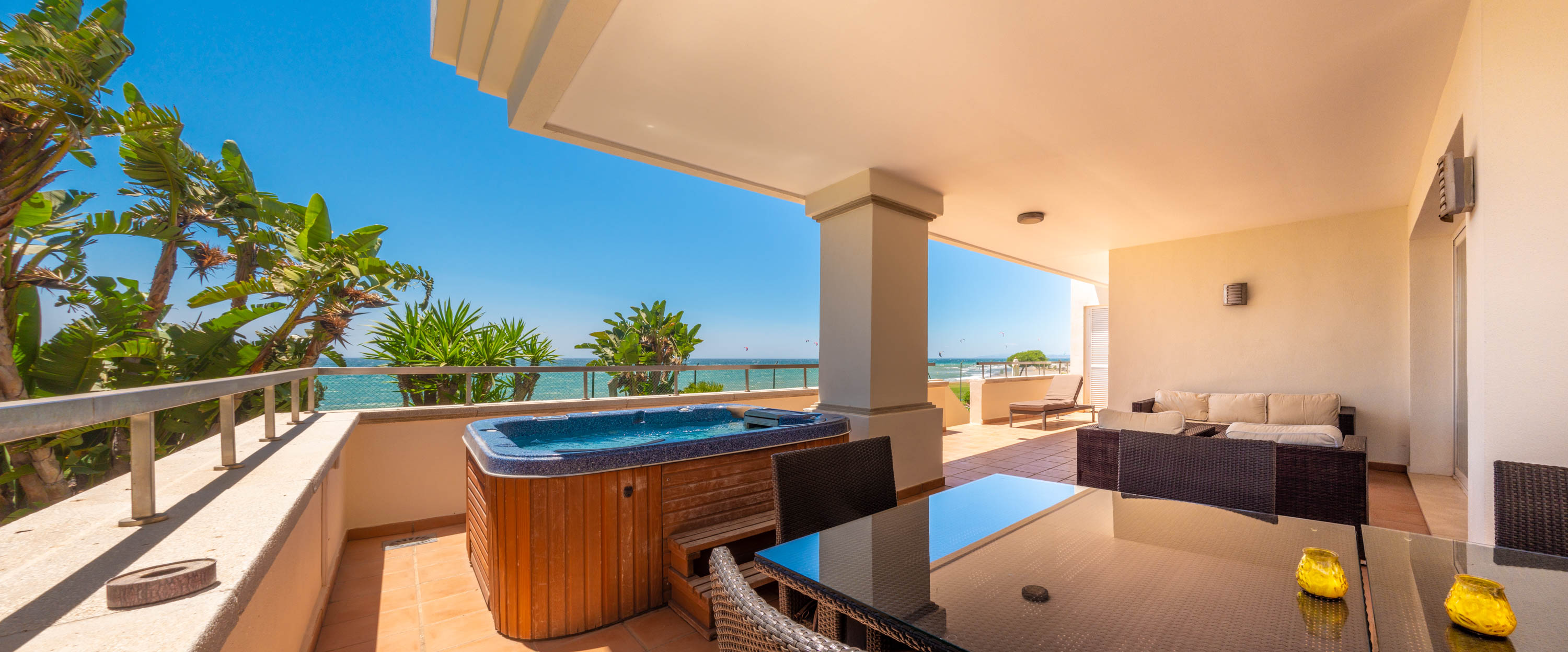 Me & 5 friends stayed in apartment 102 for 3 nights in April for a girls holiday. The apartment was stunning & everybody was so impressed. The view from the apartment was amazing, right on the beach, the hot tub was such a treat & the outdoor heated pool was an added bonus! We had a BBQ outside on our terrace while jumping in & out of the hot tub. There was a small supermarket within walking distance but we got a taxi to Lidl for a big shop which was only 5 minutes away. We also went into Puerto Banus a few times which was about 10 minutes / €20 Euro’s in a taxi. As we only had 3 days we didn’t get chance to explore everywhere but the area was beautiful. I also must say Maya was extremely helpful, from the weeks leading up to our trip she was on hand to provide recommendations for places to go & things to do & also sending over useful information / instructions for whilst we were away. Maya was available on the phone while we were there if we needed anything at all & we were greeted by her staff upon arrival & received a warm welcome. Everybody who stayed was so impressed with the apartment & all hope to return one day soon!.